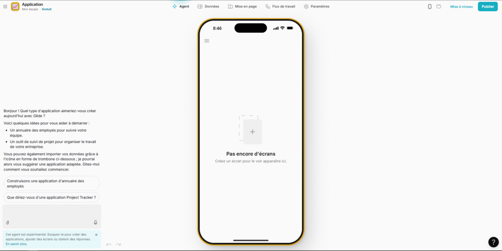 L’interface principale de Glide reste en anglais, mais la création d’applications multilingues est possible :
