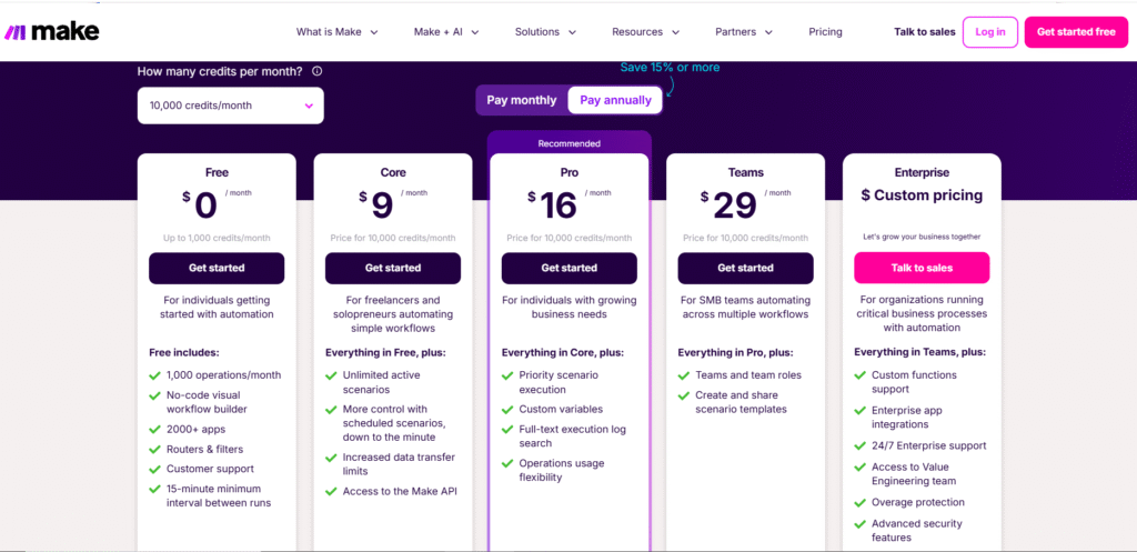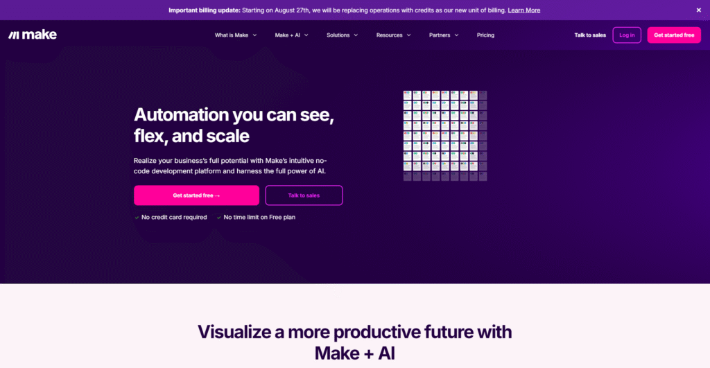 Le modèle de tarification de Make est l’un de ses plus grands atouts, mais nécessite une compréhension claire pour en tirer pleinement profit. 💡 Contrairement aux plateformes basées sur des tâches fixes, Make utilise un système d’opérations, offrant une flexibilité unique pour les automatisations complexes.