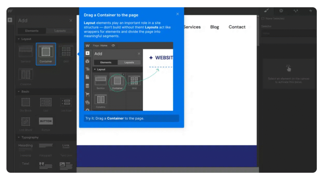 - Suivre le cours « Webflow 101 crash course » sur la Webflow University.